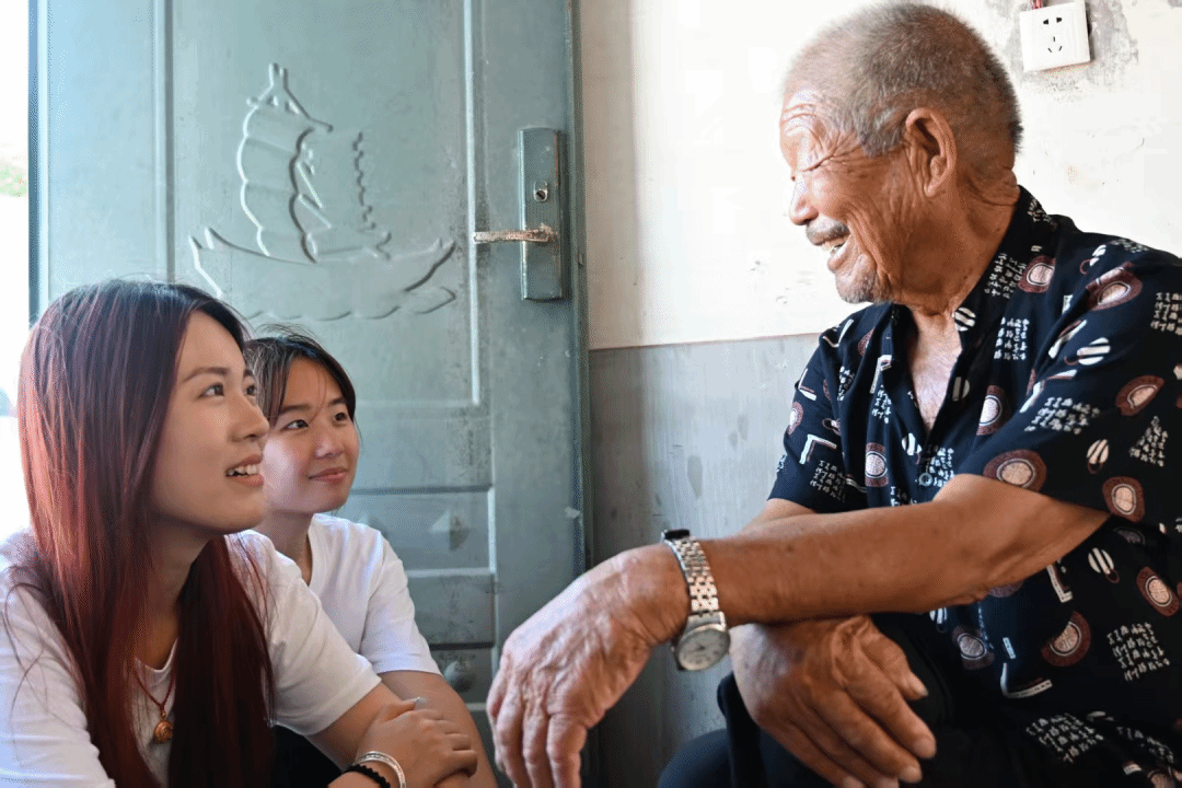 第二篇章“田野对话·薪火相传”在夏格庄双山村展开。参观双山政德教育基地,在讲解员介绍下,团队成员逐渐理解了何为“政德”,莱西官员张梦鲤用自身言行昭示着“清、慎、勤、智、仁、勇”六字家训的意义,教育引导青年知廉、守廉、助廉,为营造风清气正的社会环境贡献青春力量。随后青年们深入乡村走访,与老党员面对面交流,收集老一辈的红色故事,挖掘本地革命遗迹与英雄事迹。在此期间,团队有幸采访到抗美援朝老兵吕维宗,他用自己的亲身经历阐释人生轨迹与国家命运之间的紧密联系,希望青年能够忠于祖国,回报祖国。