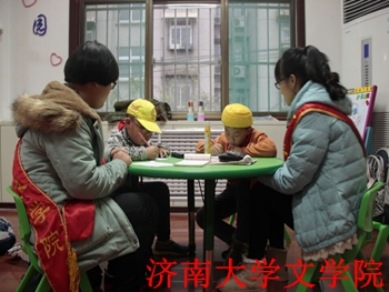 青年志愿者如期到达王官庄妇女儿童家园开展“四点半课堂”活动。今天参与活动的学生比之前多,课堂气氛也比以往欢快热闹。