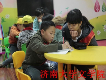 放学时间刚到,几个孩子就跑进来。他们把外套脱掉躺在软板上向志愿者抱怨说不想写作业,见小朋友的积极性不是很高,一位志愿者提议用事先准备好的糖果奖励第一个完成作业的孩子。在志愿者的耐心劝说和工作人员的帮助下,他们坐到桌子旁认真完成作业并让志愿者检查,第一个写完作业的孩子得到了奖励,并且拿着糖果向工作人员炫耀。活动接近尾声的时候,还有一个孩子未完成作业,虽然没有第一个完成,但他一直在认真写,也得到了奖励,看得出他非常高兴。活动过程中,志愿者除了检查孩子的家庭作业完成情况,也会针对作业中的错误出一些练习题让他们熟悉所学知识。