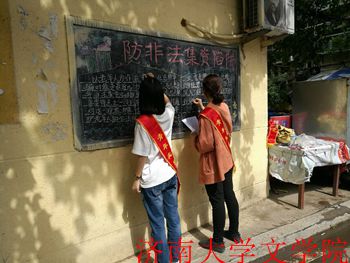 初心志愿者前往王官庄小区开展以防范非法集资为主题的黑板报活动。