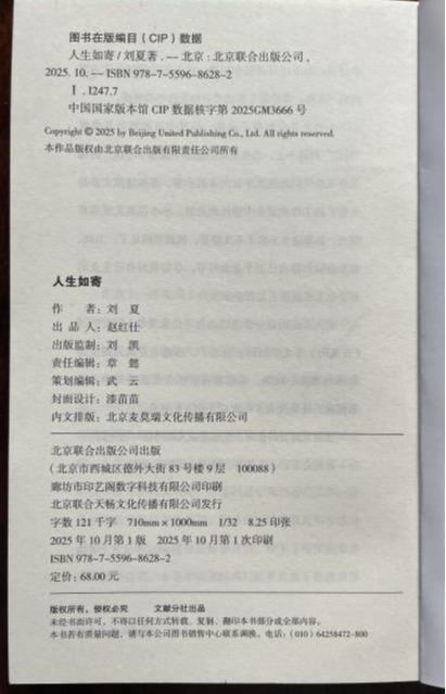 刘夏(刘丽霞)教授的短篇小说集《人生如寄》由北京联合出版公司出版(2025年10月第1版)。这是刘教授继短篇小说集《鸡鸣村》(2022)和散文集《花子》(2024)之后的第三本文学作品集,也是她在教学科研之余新的创作成果。
